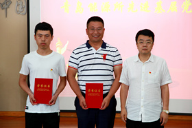 黨委副書記徐峰向大會宣讀了研究所黨委關于表彰2021年度先進基層黨組織、先進黨小組、優秀共產黨員、優秀黨務工作者的通知,并對獲得青島市優秀共產黨員榮譽稱號的王慶剛同志表示了祝賀,研究所黨委委員為獲表彰人員頒發了榮譽證書。