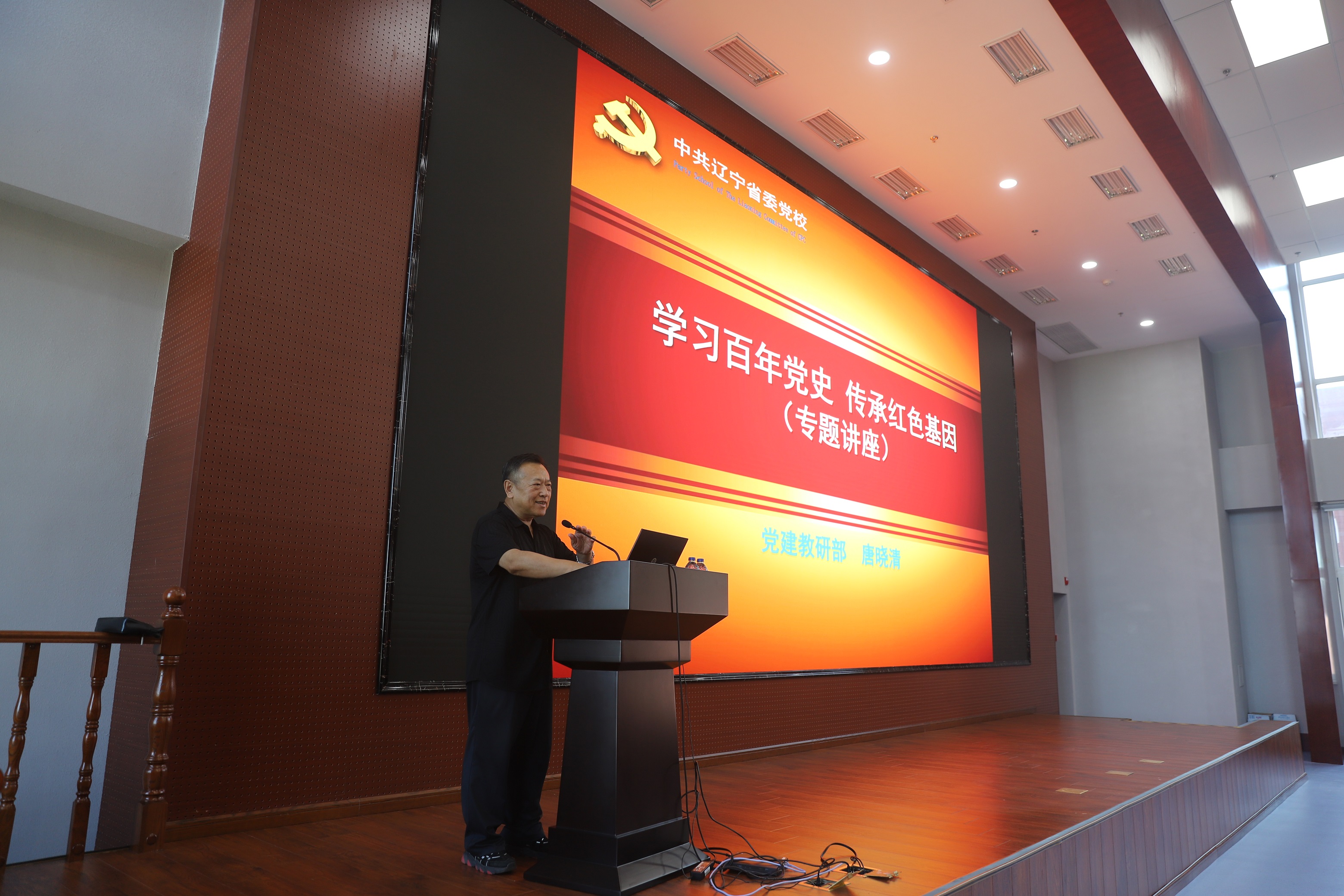 會議邀請了遼寧省委黨校黨建教研部主任唐曉青教授作了題為《學習百年黨史 傳承紅色基因》的專題報告,他從新民主主義革命、社會主義革命和建設(shè)、改革開放和社會主義現(xiàn)代化建設(shè)、中國特色社會主義進入新時代四個時期的偉大成就,回顧了中國共產(chǎn)黨偉大而艱辛的發(fā)展歷程,深刻講述了中國共產(chǎn)黨百折不撓、發(fā)憤圖強、自信自強、守正創(chuàng)新的精神。