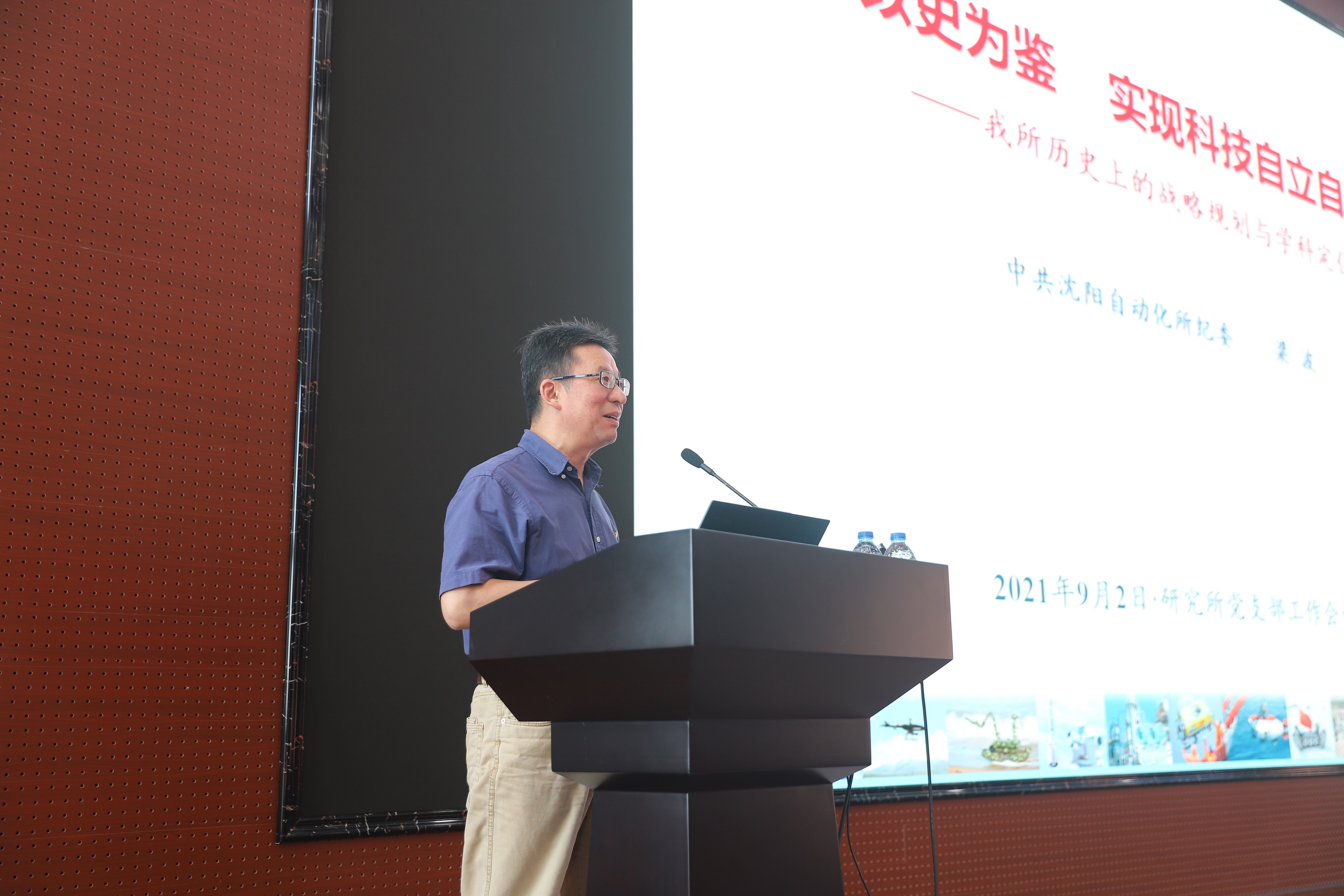 為深入學習習近平總書記在慶祝中國共產(chǎn)黨成立100周年大會上的重要講話精神,學習貫徹中國科學院夏季黨組擴大會和黨建工作推進會精神,進一步提升基層黨務干部的理論修養(yǎng),對基層黨建工作做好分類指導,夯實黨支部工作規(guī)范化標準化建設(shè),分享先進黨支部好的經(jīng)驗做法,推進黨建工作與科研工作深度融合,9月1日至2日,中國科學院沈陽自動化研究所黨委舉行了2021年黨支部工作(中期)總結(jié)和經(jīng)驗交流會。沈陽分院分黨組書記、所長于海斌,黨委書記兼副所長桑子剛,紀委書記梁波,黨委副書記、副所長孫雷,各黨支部書記以及黨辦、監(jiān)審辦相關(guān)人員等50余人參加了會議。會議由黨務工作辦公室副主任(主持工作)劉洋主持。