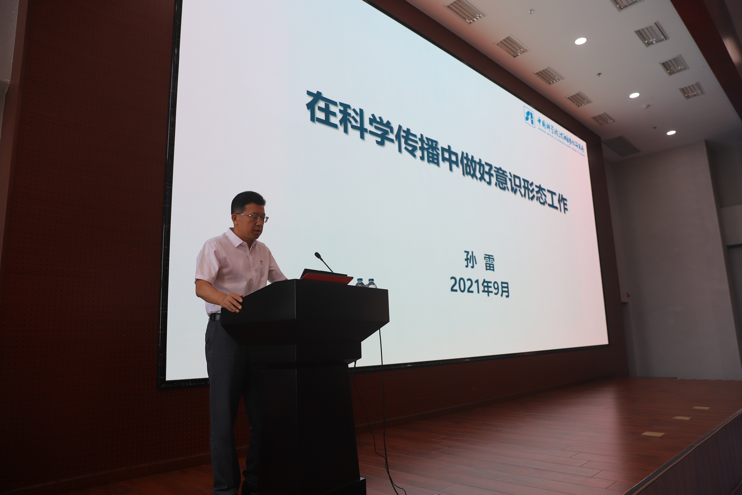 孫雷在題為《在科學傳播中做好意識形態(tài)工作》的專題報告中,強調(diào)了意識形態(tài)工作的重要性和總體要求,詳細介紹了中科院科學傳播工作機制,研究所科學傳播的整體情況和具體工作要求。隨后,他向各黨支部提出了做好意識形態(tài)工作和加強科學傳播工作的具體建議。
