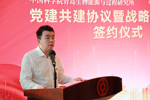 彭輝代表研究所對中國銀行青島市分行長期以來給予研究所的信任和支持表示衷心的感謝!他指出,雙方本著“資源共享、優(yōu)勢互補、互學(xué)共鑒、發(fā)展共贏”的原則簽署黨建共建協(xié)議,通過黨建共建活動平臺、分享工作資源、交流工作經(jīng)驗、開展黨建活動、解決實際問題等方式,將進一步增強雙方基層黨組織的政治功能,提升組織力、凝聚力、戰(zhàn)斗力,提升黨員隊伍整體素質(zhì),實現(xiàn)合作共贏與共同發(fā)展。期望通過雙方的戰(zhàn)略合作,攜手實現(xiàn)科技與金融資本、科技與產(chǎn)業(yè)市場融通發(fā)展,打造國際一流的新能源創(chuàng)新產(chǎn)業(yè)基地,吸引培育高科技人才,為地區(qū)產(chǎn)業(yè)升級提供科技支撐。