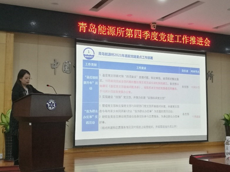 會上,黨委辦公室針對青島能源所《黨總支(黨支部)工作考核辦法》(修訂稿)進行了說明并征求意見,全面梳理并部署了年底前的基層黨建重點工作。
