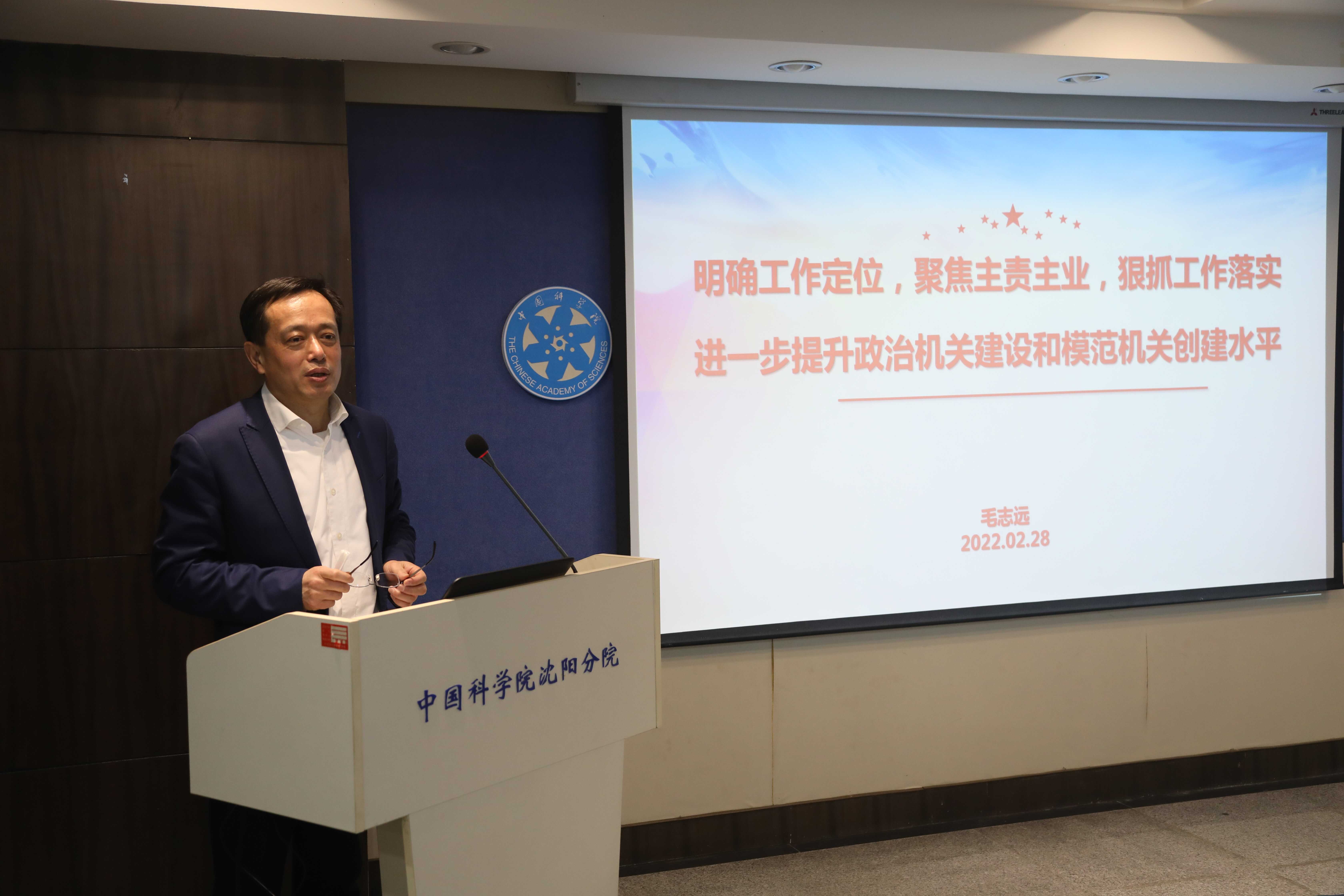 毛志遠為機關全體作了題為《明確工作定位,聚焦主責主業,狠抓工作落實,進一步提升政治機關建設和模范機關創建水平》專題報告。報告圍繞習近平總書記在歷次中青年干部培訓班開班式上的重要講話精神、院黨組對院和分院機關建設作出的系列部署、加強分院機關建設等三個方面進行詳細解讀,并對2022年度分院機關建設進行了工作部署。