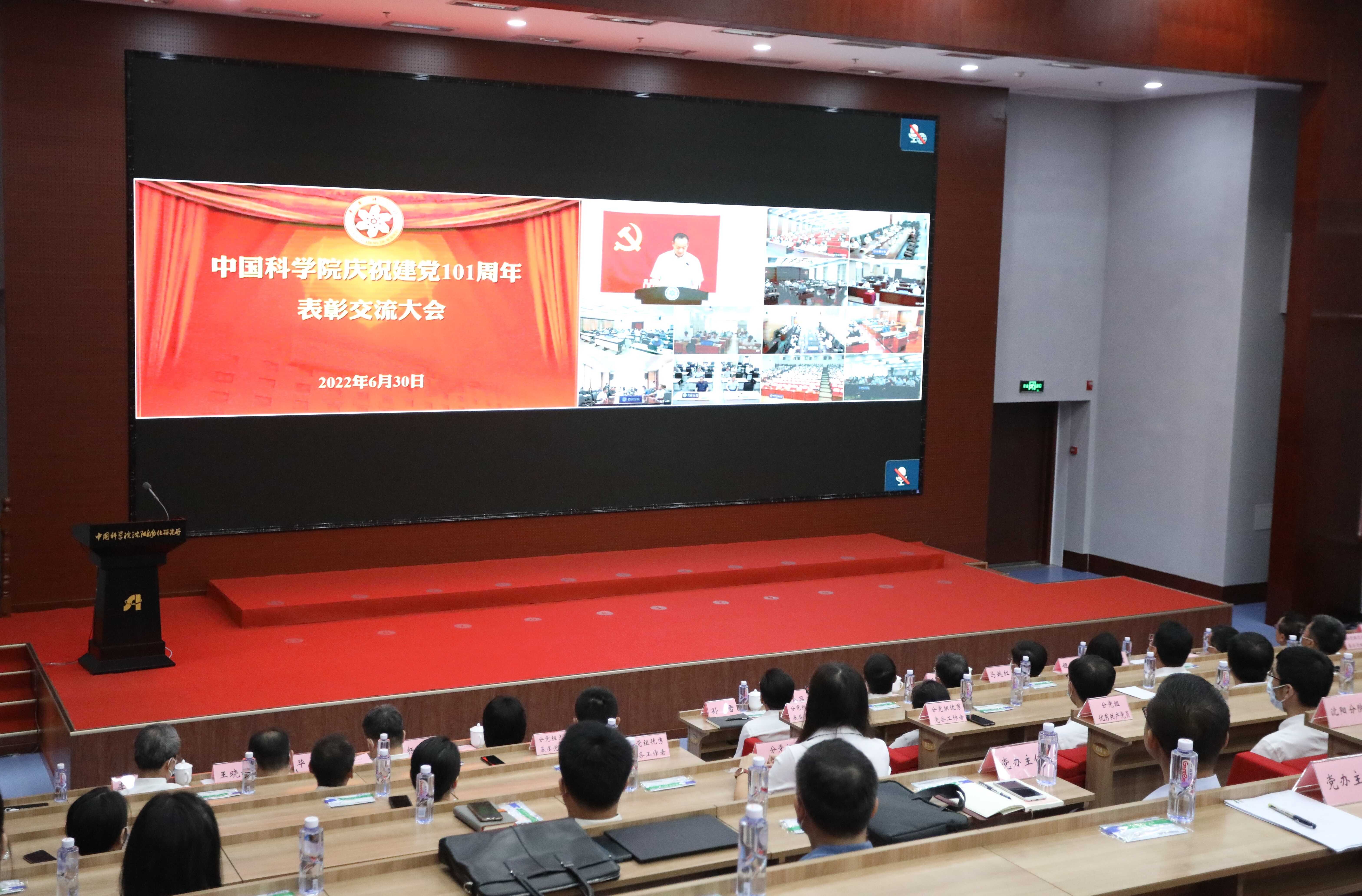會前全體參會人員通過視頻方式參加中國科學院慶祝建黨101周年表彰交流大會。