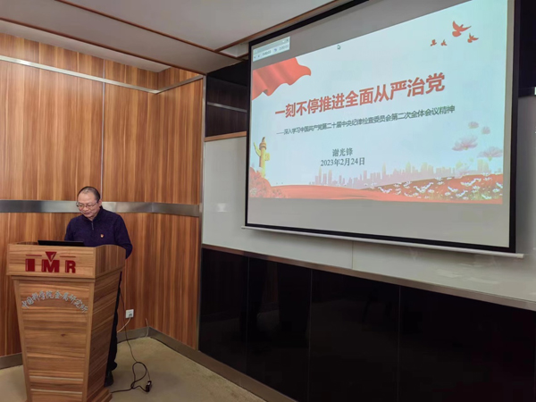 隨后,黨委副書記、紀委書記謝光鋒作了題為“一刻不停推進全面從嚴治黨”的主題報告,傳達學習了二十屆中央紀委二次全會精神。謝光鋒指出,二十屆中央紀委二次全會是全面開啟新時代新征程關鍵節點上召開的一次重要會議,習近平總書記發表重要講話,強調要站在事關黨長期執政、國家長治久安、人民幸福安康的高度,把全面從嚴治黨作為黨的長期戰略、永恒課題,始終堅持問題導向,保持戰略定力,發揚徹底的自我革命精神,永遠吹沖鋒號,把嚴的基調、嚴的措施、嚴的氛圍長期堅持下去,把黨的偉大自我革命進行到底。要把學習貫徹習近平總書記重要講話精神和中央紀委二次全會精神與學習貫徹黨的二十大精神結合起來,把握精神實質,學懂弄通做實,提高一體推進不敢腐、不能腐、不想腐的能力和水平。