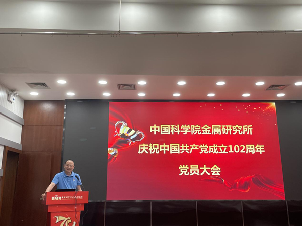 6月28日,中國科學院金屬研究所舉行慶祝中國共產黨成立102周年黨員大會。在所黨政班子成員、職工黨員、離退休和研究生二級黨委委員等300余人參加會議。會議由黨委副書記、紀委書記謝光鋒主持。