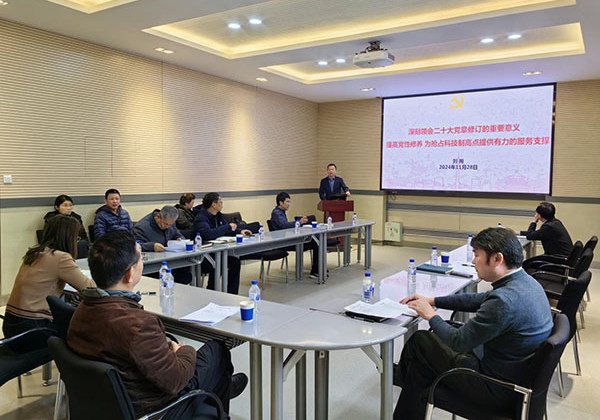 會(huì)上,所長(zhǎng)劉崗作“深刻領(lǐng)會(huì)黨的二十大黨章修訂的重要意義 提高黨性修養(yǎng) 為搶占科技制高點(diǎn)提供有力的服務(wù)支撐”的專題報(bào)告,他詳細(xì)闡述了黨的二十大黨章修訂的具體內(nèi)容及重要意義,帶領(lǐng)大家重溫了黨的二十大報(bào)告中關(guān)于科技創(chuàng)新的新論述,強(qiáng)調(diào)了黨的二十屆三中全會(huì)的新部署新要求,分析了當(dāng)前科技創(chuàng)新面臨的形勢(shì)和任務(wù),回顧了習(xí)近平總書記對(duì)我院提出的指示批示精神,深化學(xué)習(xí)了近年來(lái)院黨組的年度工作部署,明確了金屬所在科技創(chuàng)新工作中的定位和責(zé)任,并對(duì)服務(wù)支撐好科技創(chuàng)新工作的幾點(diǎn)要求:一是要提高政治站位,始終在思想上政治上行動(dòng)上同黨中央保持高度一致;二是要做遵規(guī)守紀(jì)的表率,遵守廉潔自律和作風(fēng)建設(shè)各項(xiàng)規(guī)定,做到知紀(jì)、明紀(jì)、守紀(jì);三是要勇?lián)?dāng)善作為,敢于直面問(wèn)題,以實(shí)際行動(dòng)推動(dòng)科技創(chuàng)新工作取得新成效;四是要保持良好工作作風(fēng),強(qiáng)化服務(wù)意識(shí),為科技創(chuàng)新工作提供有力保障。