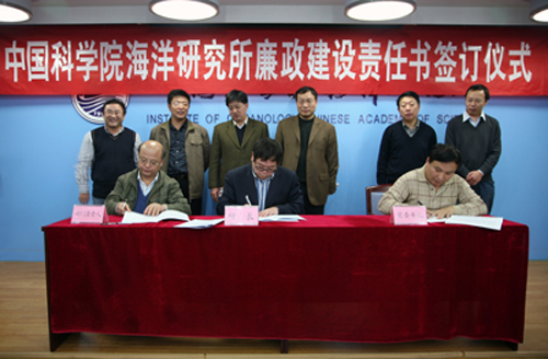 會議期間,所長孫松、黨委書記王啟堯分別與各研究單元負責人、管理與支撐部門負責人在《中國科學院海洋研究所黨風廉政建設責任書》上簽字。