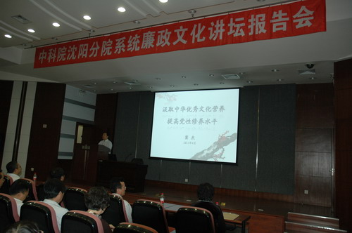 根據遼寧省直機關工委關于組織廉政文化進機關活動的通知要求,沈陽分院黨組、紀檢組于2011年5月25日在金屬所學術報告廳舉辦了沈陽地區首場廉政文化報告會,邀請省直機關紀工委書記、工委委員、行政監察專員竇杰同志作了題為“汲取中華優秀文化營養,提升黨性修養水平”的報告。沈陽分院副院長、紀檢組長韓恩厚主持了報告會。沈陽地區各研究所、公司黨委、紀委領導、黨支部書記、科技、管理干部和研究生代表等200余人參加了報告會。