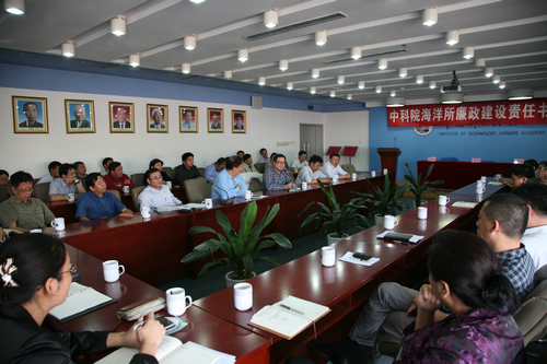 會上,紀委書記楊紅生傳達了中科院全面推進廉潔從業風險防控工作動員大會精神,所長孫松、黨委書記王啟堯分別與各研究室主任、管理與支撐部門負責人簽訂了《中國科學院海洋研究所廉政建設責任書》。