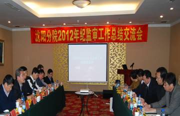 沈陽分院于2013年1月6日在沈陽召開了2012年度紀監審工作總結交流會議,傳達貫徹院冬季紀檢組長會議精神,總結交流研究所廉潔從業風險防控工作和2012年重點工作進展,部署2013年紀監審工作。沈陽分院黨組書記、副院長馬思、副院長、紀檢組長韓恩厚、大化所紀委書記、副所長王華、金屬所紀委書記、副所長譚若兵、沈陽生態所紀委書記、副所長姬蘭柱、沈陽自動化所紀委書記、副所長梁波、沈陽計算公司紀委書記呂立、沈陽科儀公司紀委書記郭東民,各單位紀委副書記和紀監審工作人員共25人參加了會議,韓恩厚主持了會議。