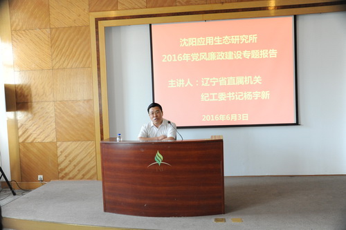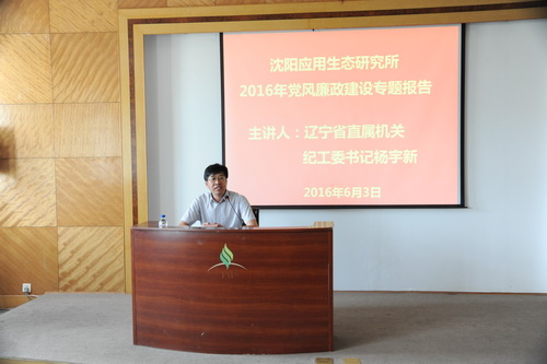 6月3日,沈陽生態所黨委在學術報告廳舉行了黨風廉政建設專題報告會,邀請遼寧省直屬機關紀工委書記楊宇新作專題報告。報告會由沈陽生態所黨委副書記、紀委書記郭秀銀主持。