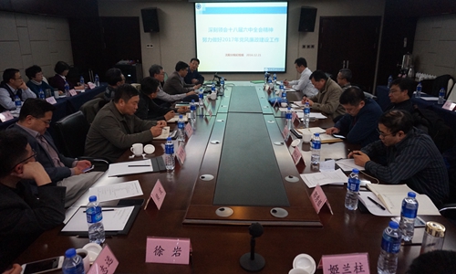 2016年12月21日,沈陽分院舉行2016年紀監審業務第四次工作交流暨年度總結會,沈陽分院分黨組書記姬蘭柱,分黨組副書記、紀檢組組長徐巖,分院系統各單位紀委書記、副書記、紀監審部門負責人及紀監審干部31人參加會議。