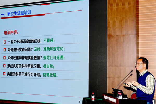 大連化物所精細化工研究室主任、紀委委員周永貴從研究生進組培訓、實驗記錄和科研數據管理、定期介紹國內外的科研不端行為等方面簡要介紹了如何培養研究生和課題組的良好學風,深刻詮釋了作為科研人員必須具備良好的誠信習慣和嚴謹的科研精神。