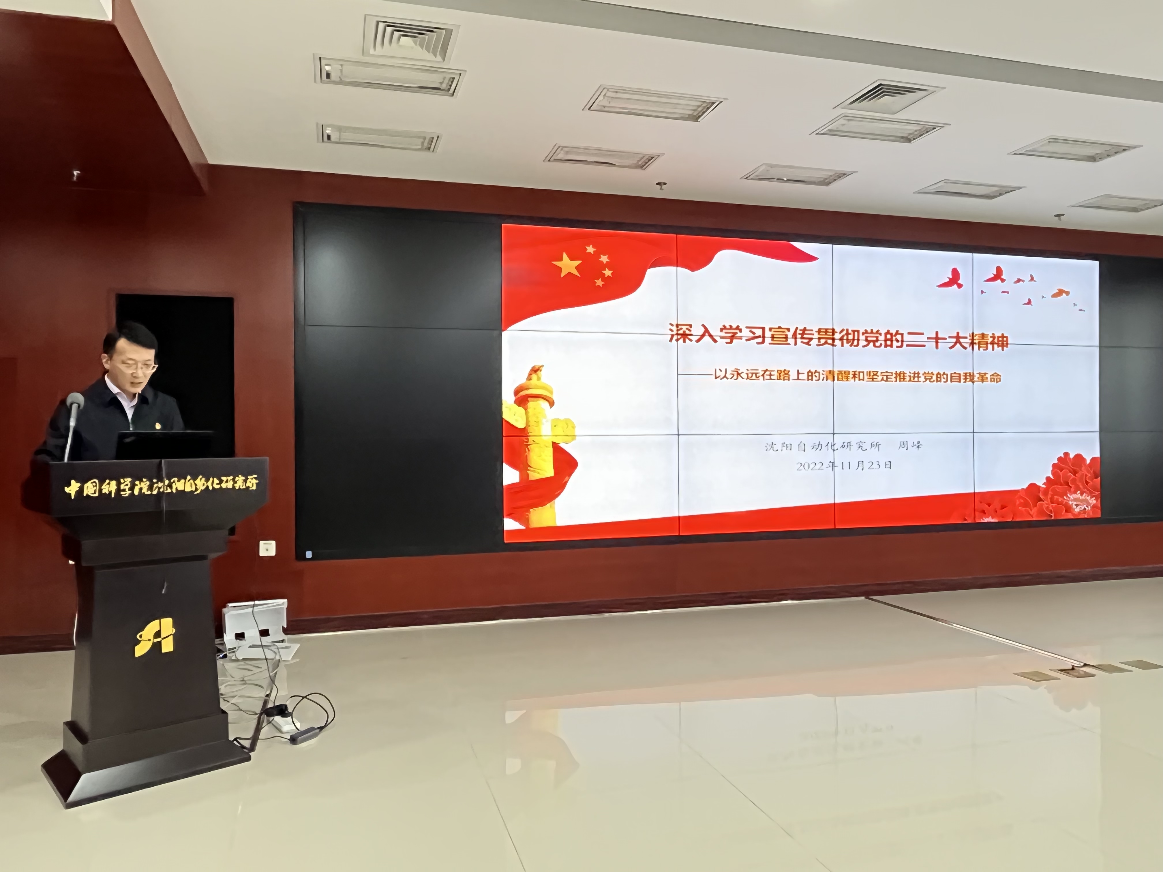 會上,周峰作了學習宣傳貫徹黨的二十大精神黨課報告。他帶領與會人員學習了黨的二十大報告主要內容、新修訂的《中國共產黨章程》,對立足工作崗位學習宣傳貫徹黨的二十大精神提出了要求。王希介紹了紀檢工作、科研誠信建設及科技倫理治理的有關規定,以及研究所落實文件要求的具體舉措,并進行警示案例教育。
