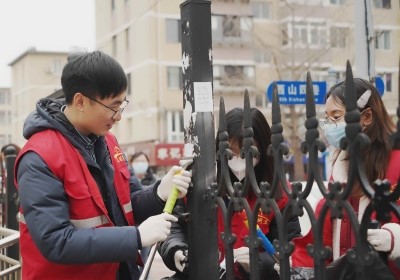 活動最后,大連化物所青年志愿者隊員攜帶著鏟刀、墻刷、噴壺等工具,對西山街道的電線桿、圍墻小廣告進行鏟除和清理,美化街道環境