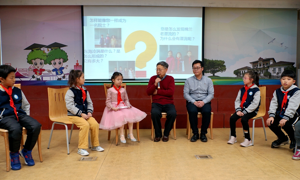 12月7日,海洋所胡敦欣院士、海洋所青促會會長胡石建研究員應(yīng)邀赴青島市實驗小學(xué)開展海洋科普活動,市實驗小學(xué)校長梁景萱、副校長胡繁華及百余名師生現(xiàn)場參與活動。