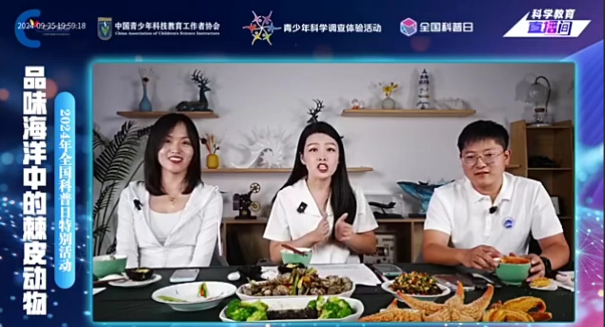 9月25日,中國科學院海洋研究所與中國青少年科技教育工作者協會聯合舉辦“科學教育直播間——品味海洋中的棘皮動物”全國科普日特別活動。海洋所副研究員邢麗麗、博士賀成,主持人王琳潔做客直播間,為公眾講解海星、海膽、海參等常見棘皮動物的科普知識。