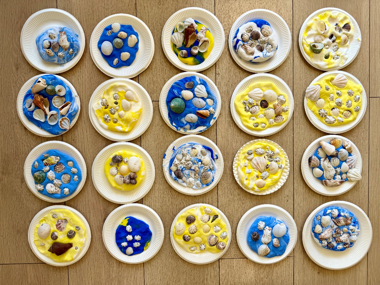 講解之后,王琳潔老師為孩子們準(zhǔn)備了精美的海洋動物貼紙,指導(dǎo)孩子們用各式各樣的海洋貝殼和粘土制作“我心中的海洋”貝殼工藝品。通過手工制作,孩子們進一步加深了知識的理解,培養(yǎng)了獨立思考、積極動手的好習(xí)慣。
