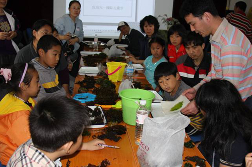 在八大關社區活動中心,同學們圍坐桌旁,認真地將自己所采標本進行分類,然后根據海藻標本制作規程進行標本的制作。看著自己采來標本,經過親自動手制作,變成一幅幅得意之作,同學們的興奮、激動溢于言表。經過2個多小時的緊張而有序的工作,同學們共制作標本100余號,一周以后,標本完全干后,將制成書簽,并將自己所制標本裝入鏡框作為作品擺放于家中,另外還將選出部分標本制成展板在社區、學校展出。
