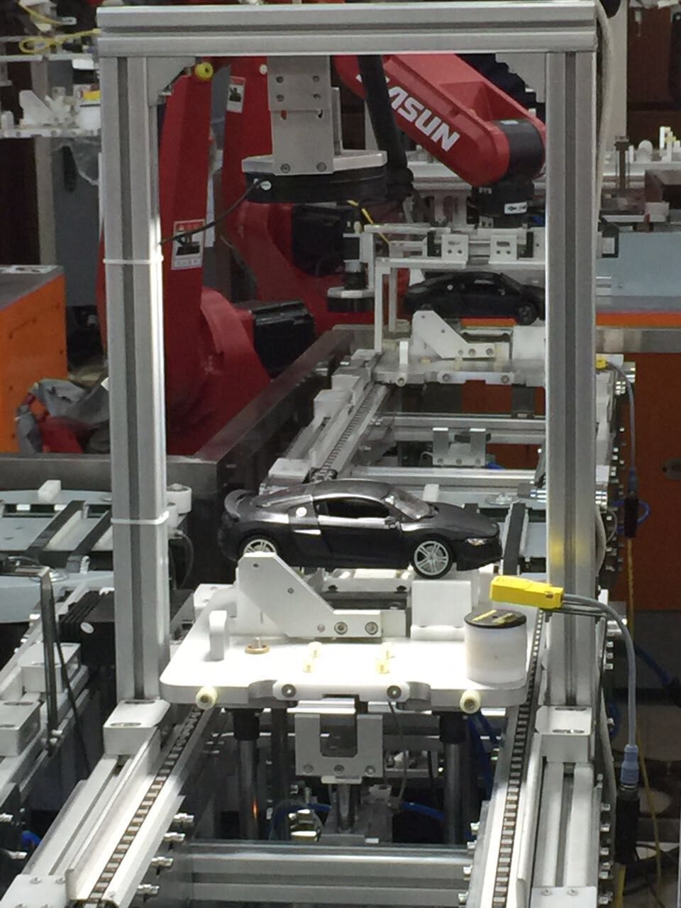 以模型車組裝為背景的智能制造示范產(chǎn)線,模擬了從消費(fèi)者下單到制造商生產(chǎn)交付的全過程 郝曉明攝