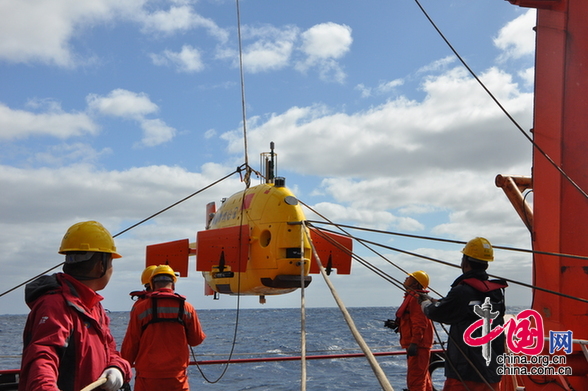 中國網西南印度洋2月19日訊(特派記者葛蕾) 當地時間2月14日,海況4級轉3級。因為海況惡劣而等候多日的“潛龍二號”在風浪平息后終于獲得自由,于當天早上8點斗志昂揚地下海了。