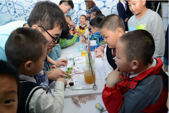 圖:趣味腐蝕現象的科普實驗吸引眾多小朋友駐足觀看