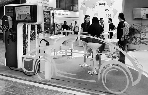 New energy vehicle technologies are showcased at a lithium battery exhibition in Shanghai. Jin Rong / For China Daily |