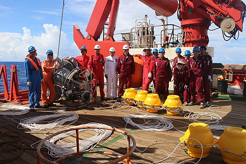 2010年開始布放的6100米深海潛標,是我國在太平洋首次成功布放的最大深度潛標。團隊成員成功克服海況惡劣、地形陡峭、船舶老化等一系列的客觀問題,圓滿完成了潛標觀測任務,開啟了我國西太平洋潛標觀測的新時代。