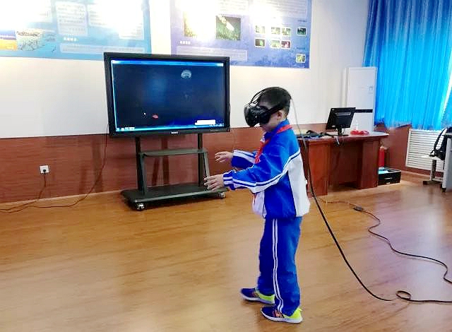 利用九三學社青島市委的社會服務平臺,中科院海洋研究所委員會的海洋專家們,于2017年5月19日第一次將“深海虛擬現實VR體驗”帶進萊西市實驗小學,這所位于青島最北端、遠離大海的學校,開展科普活動,受到孩子們的熱捧。當天,中科院海洋研究所委員會決定,幫扶萊西市實驗小學建立海洋特色學校。時隔不到一年,2018年4月2日,“同心九三科普行”暨萊西市實驗小學海洋科普基地授牌儀式在學校舉行,海洋科普教育基地正式落成。社員們將一套虛擬現實技術設備捐獻給學校,同時還捐建了一座海洋生物標本館,內有海洋生物標本40余個品種。