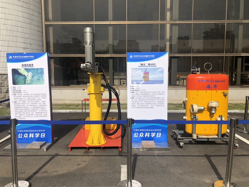 “海斗”號萬米級自主水下機器人和深海液壓機械手系統實物首次與公眾見面。中科院沈陽自動化研究所供圖