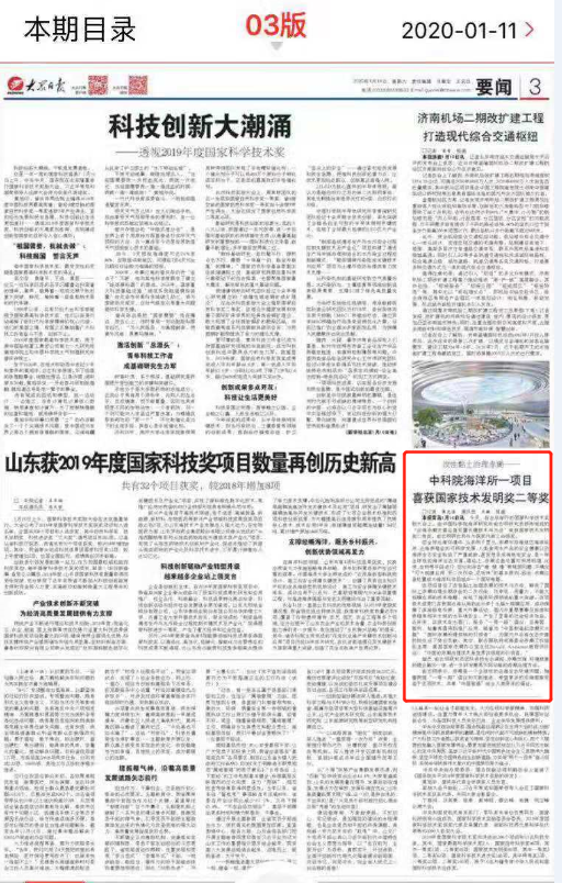 本報青島1月10日訊 今天,在北京舉行的國家科學技術獎勵大會上,由中國科學院海洋研究所俞志明研究員領銜完成的“近海赤潮災害應急處置關鍵技術與方法”榮獲國家技術發明獎二等獎。俞志明研究員作為獲獎代表上臺領獎。