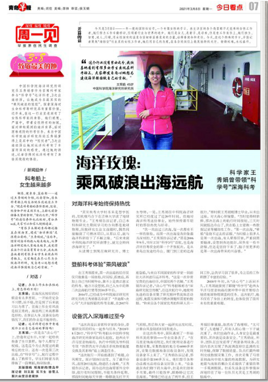 從讀博士到現在做研究員、博士生導師,一晃,王秀娟在中科院海洋研究所已經度過了近20年時間,但她對海洋科考這份事業,始終保持著年輕時的那份熱忱與好奇。