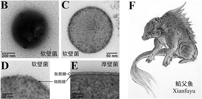 通過在培養基中添加大腸桿菌DNA,孫超岷課題組富集并純培養了一株軟壁菌。因其在進化和代謝特征上兼具軟壁菌門和厚壁菌門的特征,研究人員將該菌命名為?父魚菌(?父魚是《山海經》中一種非魚非豬的怪物)。