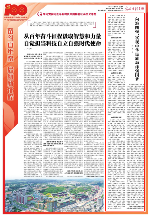 縱觀歷史,向海則國興,閉海則國弱。建黨百年以來,我們黨始終高度重視海洋科學技術(shù)發(fā)展。在中國共產(chǎn)黨的堅強領(lǐng)導下,我國海洋科技事業(yè)從篳路藍縷啟航,向海圖存、向海圖興、向海圖強,經(jīng)過幾代海洋科技工作者的不懈奮斗,實現(xiàn)了幾乎從零起步到跟跑、并跑,再到若干領(lǐng)域世界領(lǐng)跑的跨越式發(fā)展,為認識海洋、經(jīng)略海洋提供了有力科技支撐。