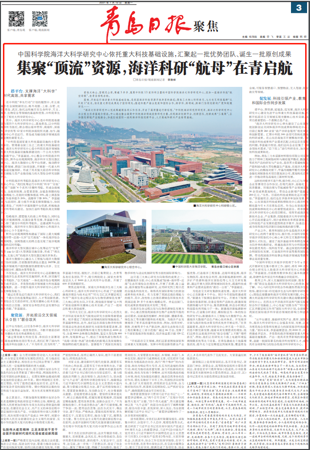 “通過在青島運行海洋大科學研究中心,我們的一個最大目的是集聚起項目、人才等創新資源,開展綜合交叉前沿研究,實現關鍵核心技術突破,為科技自立自強、國家安全和經濟社會發展作出重大貢獻。”李富超說。