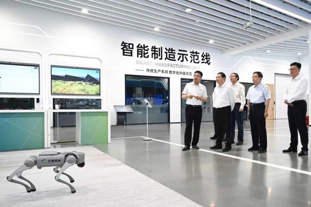 省委書記、省人大常委會主任郝鵬在遼寧雙智賦能科技有限公司聽取數字化轉型技術和應用場景情況介紹。