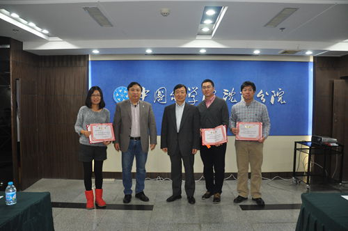 王啟堯書(shū)記首先宣讀了《沈陽(yáng)分院第四屆優(yōu)秀青年科技人才獎(jiǎng)表彰決定》,并與韓恩厚院長(zhǎng)共同為獲獎(jiǎng)?wù)哳C發(fā)了獲獎(jiǎng)證書(shū)。