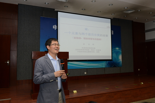最后,中國科學院成會明院士以《碳——一個元素與兩個諾貝爾獎的故事》為題,介紹了金剛石、石墨、富勒烯、碳納米管、石墨烯等一系列性能優異的材料。生動的講述了富勒烯、碳納米管和石墨烯的發現、研究進展并獲得諾貝爾獎的故事。報告后,成會明院士與現場學生進行了精彩的互動,博得了同學們一陣陣熱烈的掌聲。
