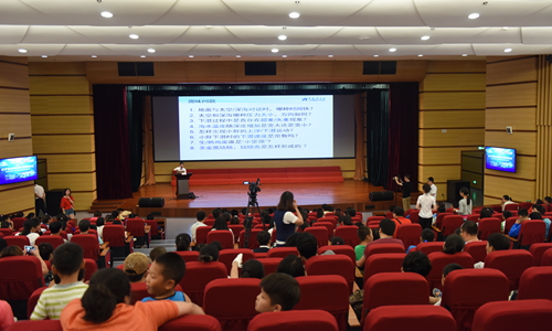 報告中,劉開周通過自己四年里7次深潛的經歷,生動形象地與大家分享了奇妙的海底世界和一些鮮為人知的海試背后故事,緩緩掀起“蛟龍號”的神秘面紗。“中國‘蛟龍號’載人潛水器順利到達7062米深的海底,在世界載人深潛的榜首刻下了中國人的名字,是世界同類型載人潛水器的最大下潛深度,這是中國人的驕傲”,劉開周的報告不時贏得現場陣陣掌聲。報告結束后,劉開周與聽眾們進行了趣味互動,“地面與太空和深海對話時,哪種時間快” ?面對提出的問題,孩子們踴躍舉手回答,氣氛十分熱烈,其中也不乏一些家長給出了非常專業的答案。本次報告會使廣大學生開闊了眼界,增長了知識面,對于從小樹立熱愛科學的精神營造了良好的社會氛圍。