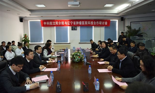 2017年3月6日,沈陽分院與遼寧省腫瘤醫院共同舉辦科技合作研討會。蘭州分院、近代物理所、高能物理所、大連化物所、沈陽自動化所等20余位專家參會。會議由遼寧省腫瘤研究所所長、遼寧省腫瘤醫院副院長王丹波主持。