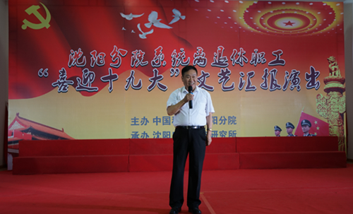 9月19日,沈陽分院組織分院系統駐遼各單位離退休職工,在沈陽舉辦“喜迎十九大”文藝匯演。沈陽分院分黨組書記、副院長姬蘭柱,沈陽生態所黨委書記、副所長金昌杰,黨委副書記、紀委書記郭秀銀,沈陽自動化所黨委書記、副所長桑子剛,金屬所副所長張健以及駐遼單位離退休工作負責人和離退休演職人員近200余人參加了演出活動。