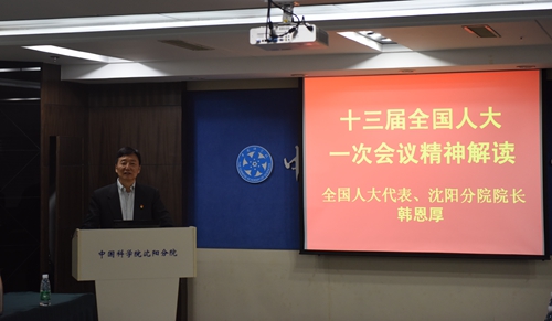 韓恩厚對沈陽分院貫徹落實好會議精神提出五點要求,一要以習近平新時代中國特色社會主義思想為引領,積極落實院黨組的工作部署,全面做好分院系統的工作;二要抓住機遇、銳意改革,全面提升創新能力;三要積極努力,提升自身工作能力,提升整體管理水平;四要增強責任感、使命感、擔當精神,推動我院“率先行動”計劃的有效實施;五要進一步推進科技成果轉化,為遼、魯兩地區域經濟社會發展做出更大貢獻。