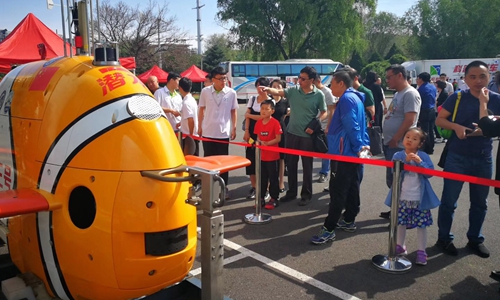 在沈陽自動化研究所,推出了建所60年主題展和機器人成果展,兩款水下機器人以實物的方式首次與社會公眾見面。一款是今年4月成功完成海試和試驗性應用潛次的“潛龍三號”自主水下機器人。另一款是我國自主研制的首套6000米級遙控潛水器裝備(ROV)。“海翼”號水下滑翔機、“潛龍一號”和“潛龍二號”自主水下機器人、地震救援機器人、蛇形機器人和新松公司智能服務機器人分別以實物或模型的形式亮相。針對不同年齡段的受眾,沈陽自動化所組織舉行了多場科普報告,光電信息技術研究室副主任、研究員、博士生導師朱楓作了題為《機器視覺——機器人的火眼金睛》的報告,講解了機器人、機器視覺概念,介紹了機器視覺的應用和沈陽自動化所的相關研究成果。空間自動化技術研究室副研究員、碩士生導師、中科院青年創新促進會會員宋屹峰以《人、機器、機器人》為題作報告,從機器人、工業機器人、特種機器人、機器人未來4個故事入題講述了機器人的發展歷程和相關知識。此外,沈陽自動化所針對小學及學齡前兒童安排研究生分別講解了多場機器人科普報告。活動期間,還向來參加活動的公眾發放了參觀護照,集印章換取紀念品,得到前來參加活動的小科技迷們的踴躍參與。