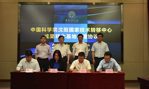 6月4日,沈陽分院與遼寧省科技廳、沈陽市科技局、渾南區政府簽署沈陽國家技術轉移中心成果轉化基地(沈陽)(以下簡稱“轉化基地”)共建協議,同時召開轉化基地第一次理事會。沈陽分院院長韓恩厚、副院長馬越紅,遼寧省科技廳副廳長王學來,沈陽市科技局局長趙日剛,渾南區區委書記王一兵、區長李軍及入駐項目負責人等參加會議。會議由王一兵主持。