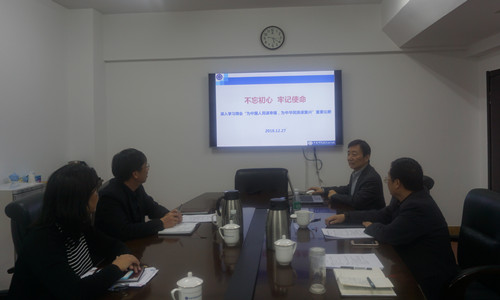 為了深入學(xué)習(xí)貫徹習(xí)近平新時代中國特色社會主義思想和黨的十九大精神,按照2018年學(xué)習(xí)計劃要求,12月27日,沈陽分院分黨組理論中心組開展了專題學(xué)習(xí)活動,深入學(xué)習(xí)領(lǐng)會新時代中國共產(chǎn)黨的初心和使命是“為中國人民謀幸福,為中華民族謀復(fù)興”的重要論斷。沈陽分院分黨組成員、院長韓恩厚以《不忘初心、牢記使命》為題做了專題報告。分黨組書記、副院長姬蘭柱,分黨組成員、副院長馬越紅,分黨組副書記、紀檢組組長郭秀銀參加了學(xué)習(xí)會議。會議由姬蘭柱主持。
