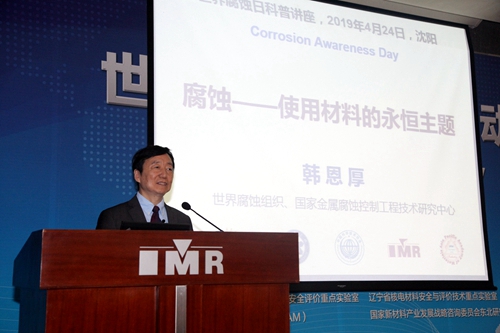 前世界腐蝕組織主席(第四任,2016.03—2019.03)、中國科學院沈陽分院院長、中國科學院金屬研究所研究員韓恩厚為社會公眾作了題為《腐蝕-使用材料的永恒主題》的精彩報告。韓恩厚從什么是腐蝕,腐蝕給我們?nèi)粘I顜淼耐{,對國家的重大工程如航天、核電、油氣、高鐵和橋梁等基礎(chǔ)設(shè)施等造成的重要影響,以及如何控制和利用腐蝕等方面進行了全面的介紹。