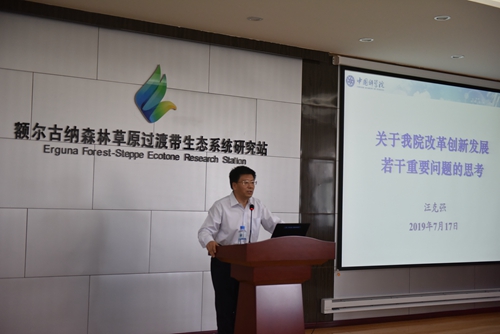 在專題報告模塊,汪克強作了題為《關于我院改革創新發展若干重要問題的思考》特邀報告。報告從“從歷史走向未來”、“新形勢新挑戰新要求”、“近期重點工作”三個方面,全面歷史回顧了新中國科技創新70年發展歷程,中科院與祖國同行、與科學共進的光輝歷程以及相關啟示和問題,對當前我院大力推進“率先行動”計劃的戰略性安排、加快實現“六個根本性轉變”等進行了深入解讀,同時闡述了我院近期的工作重點。汪克強強調,黨的領導是中科院的根本保障,國家的需求是中科院的存在依據。中科院一直牢記“創新科技、服務國家、造福人民”的宗旨,當前“三個面向、四個率先”辦院方針的提出,就是院黨組貫徹落實“四個意識”的具體體現。汪克強指出,當前開展的“不忘初心、牢記使命”主題教育,需要我們牢記中科院的辦院方針和宗旨,把主題教育的成果轉化為創新發展的動力,不斷產出改革創新工作成果,向黨和國家以及人民交上滿意的答卷。隨后,汪克強主持召開了工作座談會,征集了我院以及研究所改革創新發展存在的問題和意見建議,并就戰略規劃、人才隊伍建設、體制機制創新等相關問題開展了熱烈的討論。沈陽生態所所長朱教君作了題為《堅守生態科技創新初心、踐行美麗中國建設使命》的專題報告,報告對生態文明建設的重要意義、亟待解決的科學問題、以及森林屏障生態安全帶的實踐等進行了詳盡的闡述,對于我們正確認識“綠水青山就是金山銀山”的發展理念,推動形成綠色發展方式和生活方式具有積極意義。
