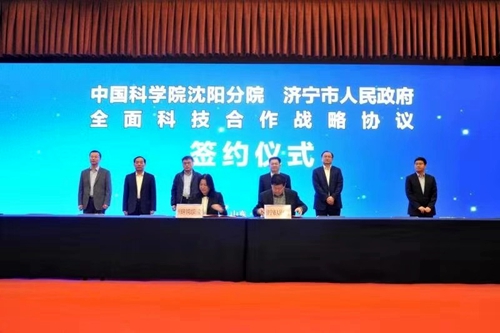會上,中科院沈陽分院與濟寧市人民政府分別簽署了《濟寧市人民政府與中國科學院沈陽分院全面科技合作戰(zhàn)略協(xié)議》、《濟寧市人民政府與中國科學院沈陽分院共建中國科學院山東綜合技術轉(zhuǎn)化中心濟寧中心協(xié)議》,馬越紅與張勝明代表院市雙方簽字,馬越紅與石光亮為中科院山東綜合技術轉(zhuǎn)化中心濟寧中心揭牌。