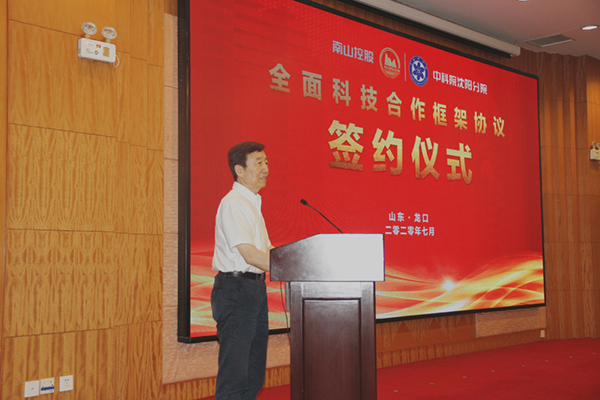 為深入貫徹落實習(xí)近平總書記在企業(yè)家座談會上重要講話精神,進一步落實院省推進山東新舊動能轉(zhuǎn)換重大工程合作協(xié)議,以科技創(chuàng)新打造未來發(fā)展新優(yōu)勢,7月28日,在沈陽分院第34期所級領(lǐng)導(dǎo)干部暑期學(xué)習(xí)班期間,沈陽分院與南山控股舉行全面科技合作框架協(xié)議簽約儀式。沈陽分院分黨組書記于海斌,院長韓恩厚,副院長馬越紅,分黨組副書記、紀檢組長郭秀銀,來自分院系統(tǒng)研究所、轉(zhuǎn)制公司的所級領(lǐng)導(dǎo)干部,煙臺市副市長張代令,龍口市委書記韓世軍、市長呂波,南山控股董事長宋建波、總經(jīng)理宋日友及各產(chǎn)業(yè)公司負責(zé)人出席簽約儀式。